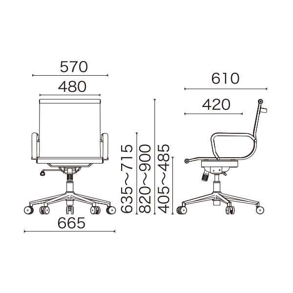 | 外寸法 | 幅570mm × 奥行610mm × 高さ820-900mm |