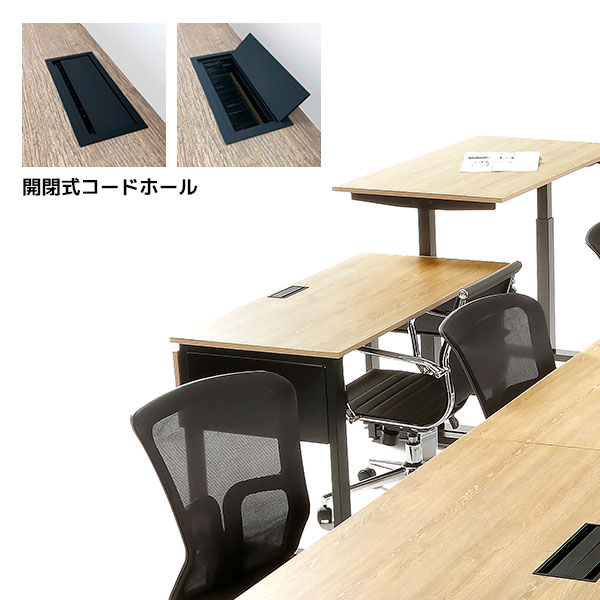 | 商品仕様 | 天板:18mm厚パーティクルボード+低圧メラミン エッジ:PVC 脚部:スチール粉体塗装 コードホール:アルミ(艶消しブラック) |