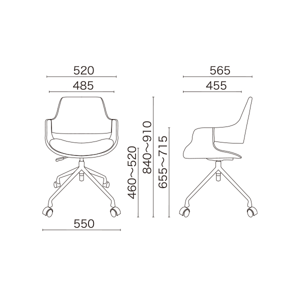 | 外寸法 | 幅520mm × 奥行565mm × 高さ840-910mm |
