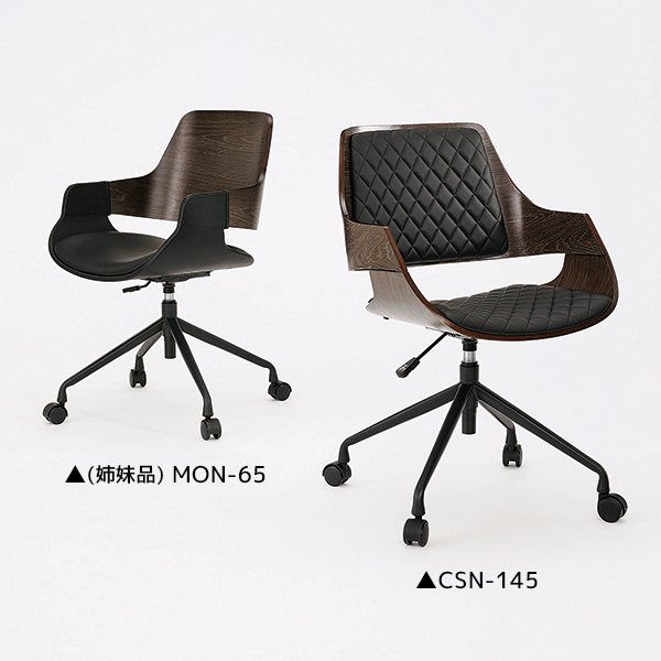 木目×レザー調のチェア【MON-65】の姉妹品として、こちらの背クッションタイプが登場!