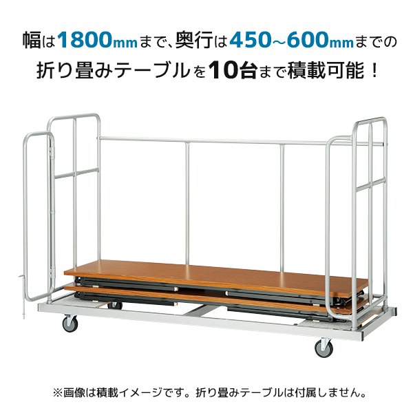 | 備考 | ■積載可能テーブルサイズ・条件 ・幅1800mm×奥行450~600mmまで ・折り畳み式テーブルに限る ・上記条件のテーブル10台まで積載可 ■キャスター付き |