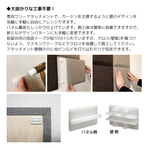 パネル裏面もしっかり仕上げています。施工後は簡単に脱着できますので、新たなデザインパターンにも手軽に変更できます。