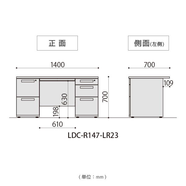 | 商品仕様 | 天板:パーティクルボード(厚27mm)メラミン化粧板 脚フレーム:スチール粉体塗装 幕板:スチール粉体塗装 袖箱:スチール粉体塗装 |