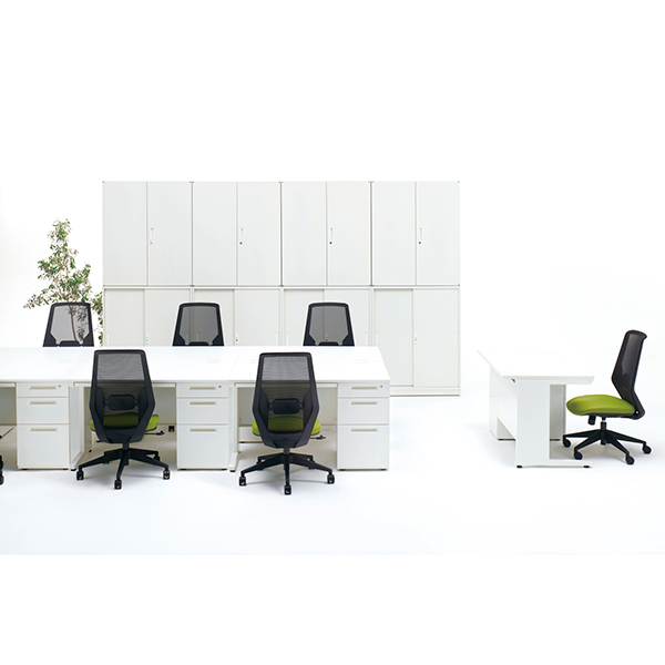抜群の収納力と着席スペースのゆとりを兼ね備えた幅1600mmタイプ両袖机!