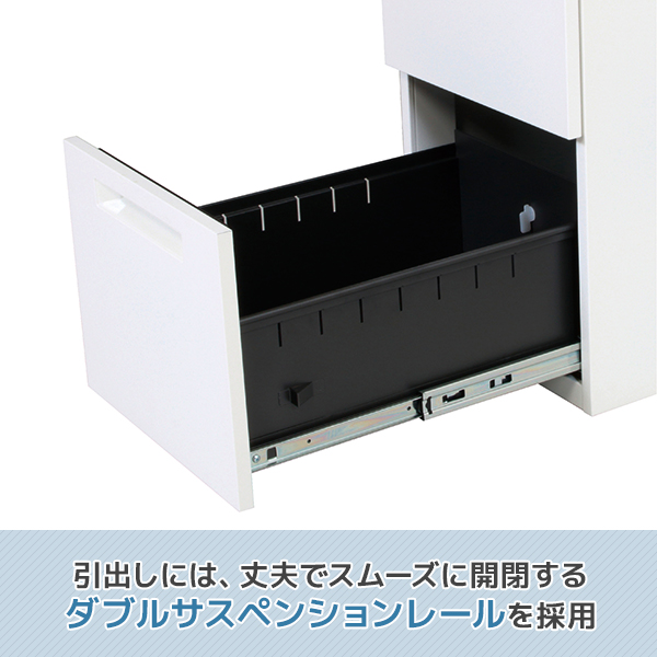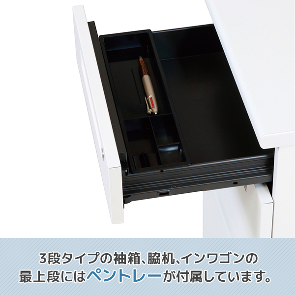 | 備考 | ■鍵付き ■仕切板:中サイズ1枚、大サイズ3枚付き ■ペントレー:1個付き ■天板:配線ホール付き ※センタートレイはA3用紙非対応です。 |
