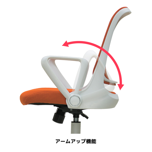 アームアップ機能付きですので、肘がデスクにぶつかって収納できない等、不要な時は肘掛を背もたれの位置に収めておくことができます。