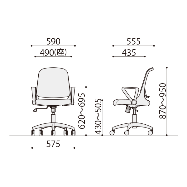 | 外寸法 | 幅590mm × 奥行555mm × 高さ870-950mm |