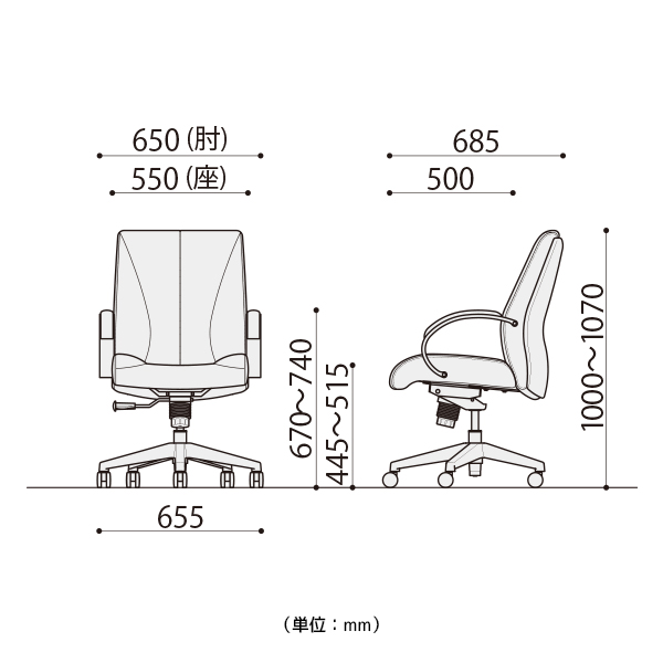 | 外寸法 | 幅650mm × 奥行685mm × 高さ1000-1070mm |