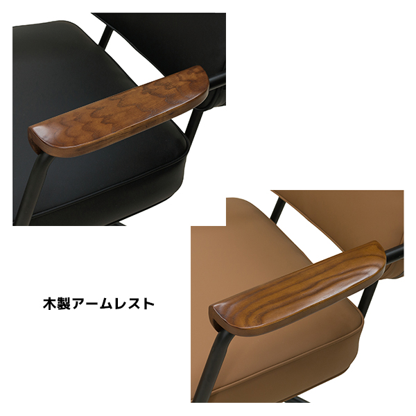 | 商品仕様 | 張地:合成皮革(ポリウレタンレザー) 脚:スチール 肘:天然木 |