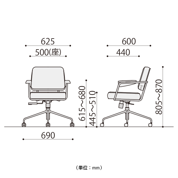 | 外寸法 | 幅625mm × 奥行600mm × 高さ805-870mm |
