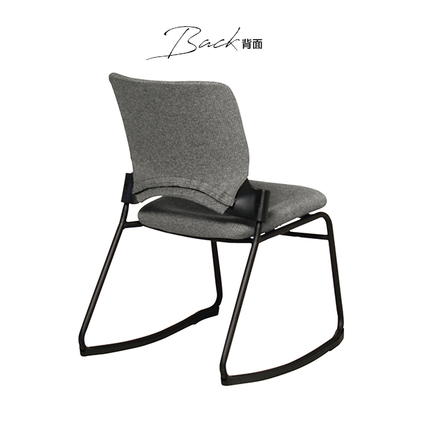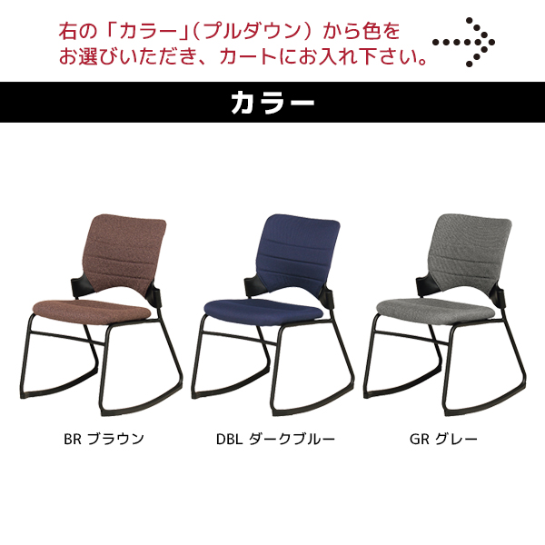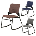 カーブ脚により、前後にゆらゆらと揺れるロッキング機構のミーティングチェア。