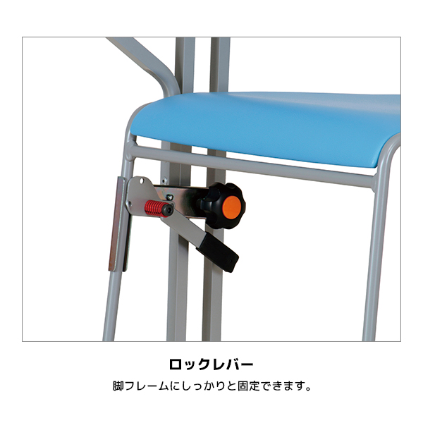 ロックレバー付属で、本体チェアの脚フレームにしっかり固定できます。