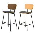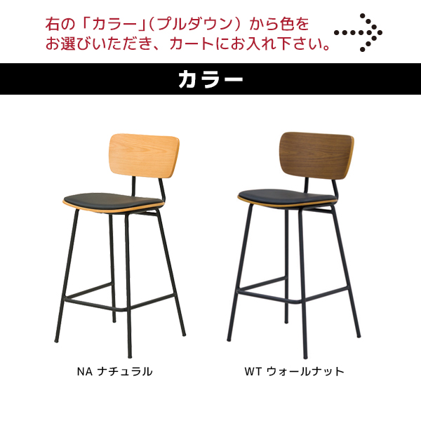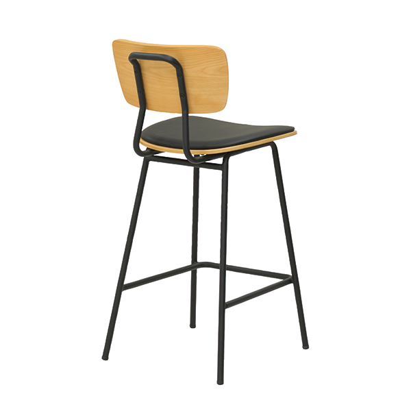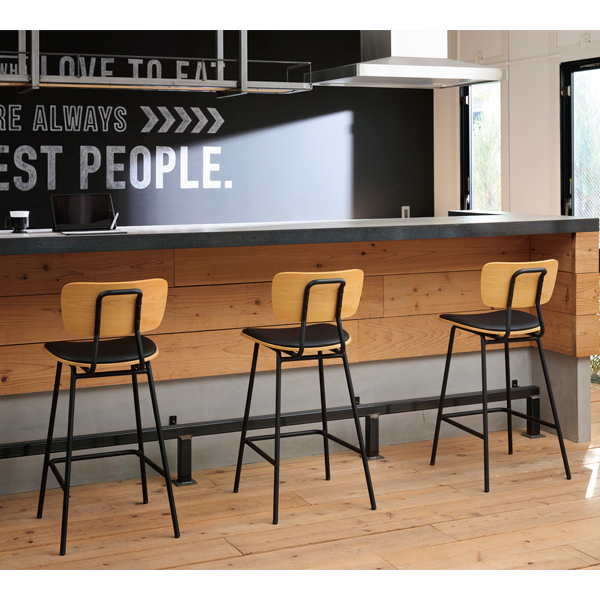 ブラックのスチールフレームに木目の背もたれがインダストリアルな雰囲気を演出するハイチェア。