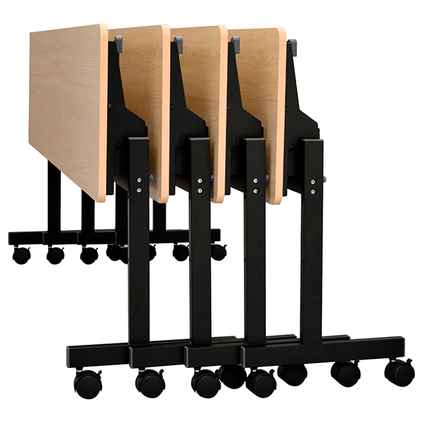 使用しない時には、天板を跳ね上げてスタック収納することで省スペースでの収納ができます。