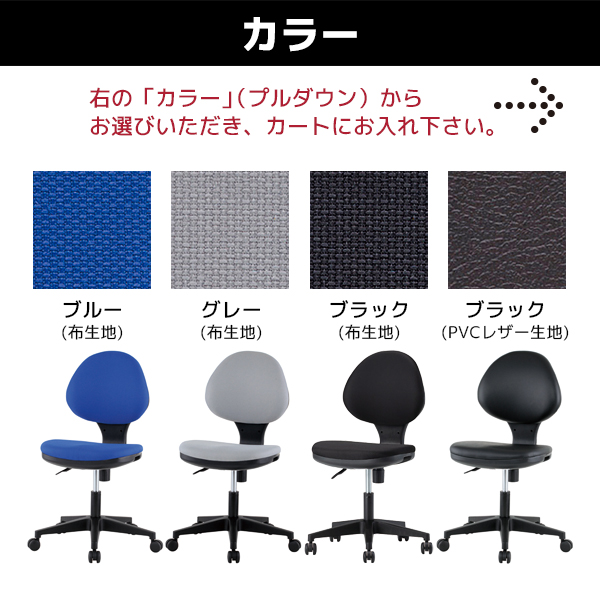 | 商品仕様 | 生地:布(ブラックはPVCレザー) 背座裏:樹脂成形品・ウレタン(ブラックはPVCレザー) キャスター:ナイロンキャスター |