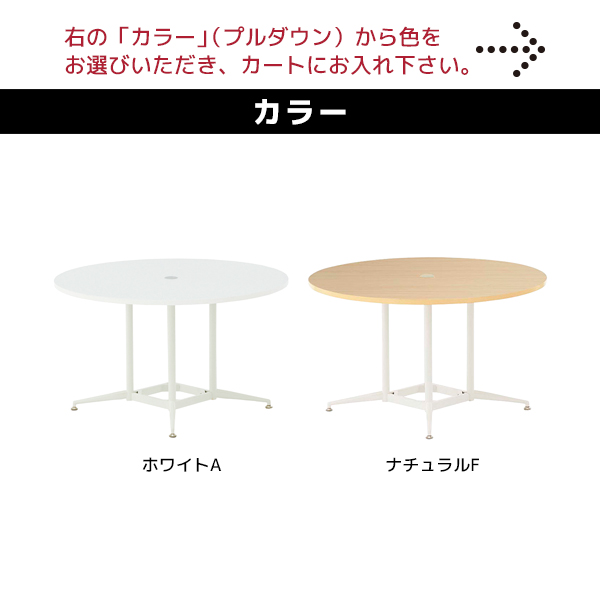 中央に配線機能が付いた「円形天板」のOAラウンドテーブル。