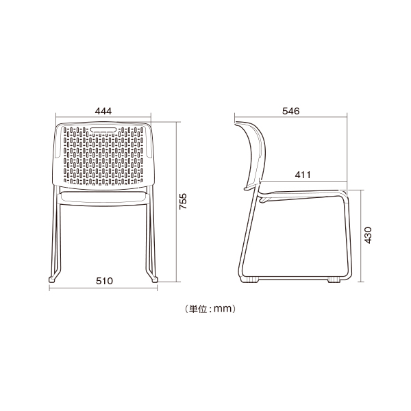 | 外寸法 | 幅510mm × 奥行546mm × 高さ755mm (座面高430mm) |