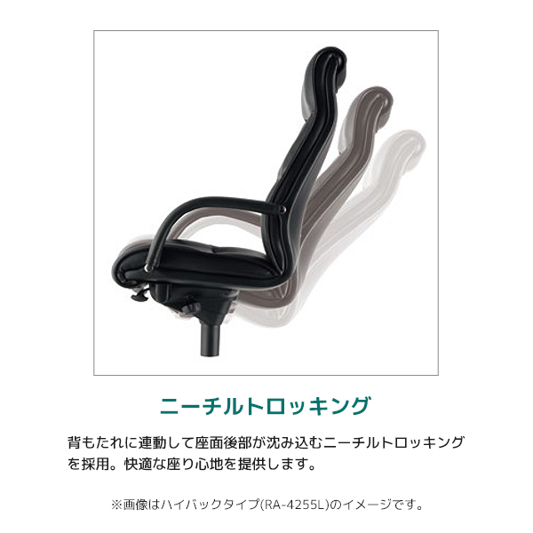 | 備考 | ■ニーチルトロッキング(ロッキングストッパー付、強弱調整機構付) ■ガス圧上下調節機構 |