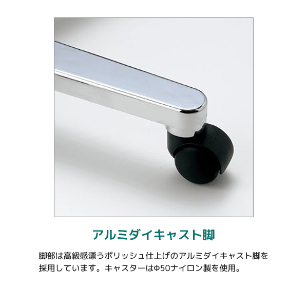 | 商品仕様 | 背・座:成型合板、ウレタンフォーム L:革張り、一部ビニールレザー張り F:布張り V:ビニールレザー張り 肘部:成型合板、ウレタンフォーム 脚部:アルミダイキャスト(ポリッシュ仕上げ)、φ50ナイロン双輪キャスター付 |