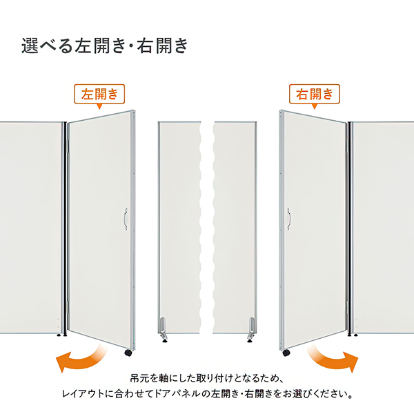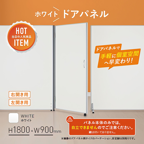 | 備考 | ■付属品 H1800用エンドカバー(3本) コーナーポール(1本) キャスター(1個) ※こちらのドアパネル本体のみでは、自立設置はできませんので、ご注意ください。 ※あくまで簡易型のドアとなりますので、施錠することはできません。 ※必ずドアパネルの両側に、別売りのローパーティションを設置してください。 詳しい設置方法は左記の商品説明・説明画像をご確認下さい。 |