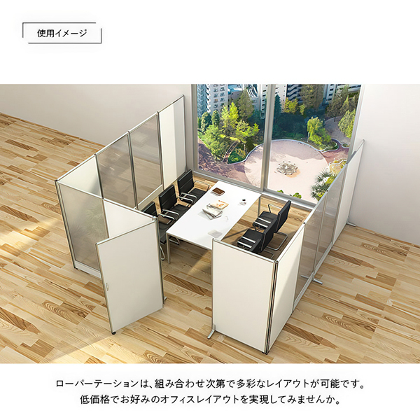 単体では自立はしませんので、吊元・受け側となるローパーティション、及びローパーテーション設置に必要な安定脚・各種オプションパーツをお買い求めください。