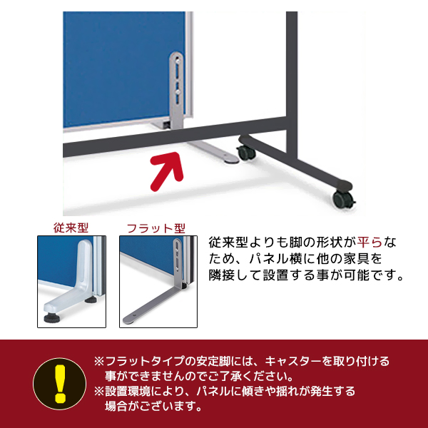 ※フラットタイプの安定脚には、キャスターを取り付ける事ができませんのでご了承ください。