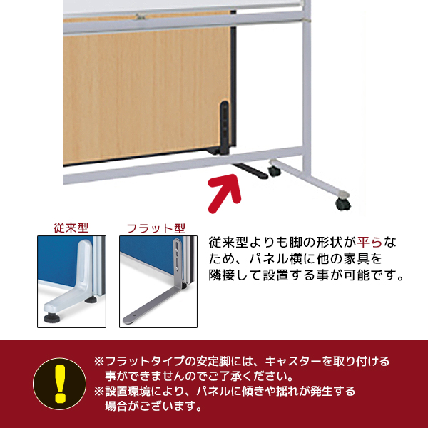 ※フラットタイプの安定脚には、キャスターを取り付ける事ができませんのでご了承ください。