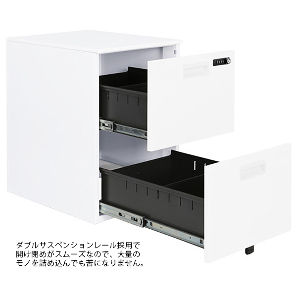| 備考 | ■ダブルサスペンション機能 ■検索キー×1本 ■検索ピン×1個 ■上段用 仕切り板(H140タイプ)×1枚 ■下段用 仕切り板(H140タイプ)×1枚 ※付属の仕切り板は、一番下の引き出しの奥にバンドで固定してあります。 |