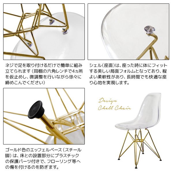 つい目を引いてしまうようなクリアタイプのシェルチェア。