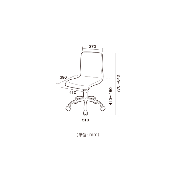 | 外寸法 | 幅410mm × 奥行390mm × 高さ770-840mm (座面高410-480mm) (脚幅:510mm) |