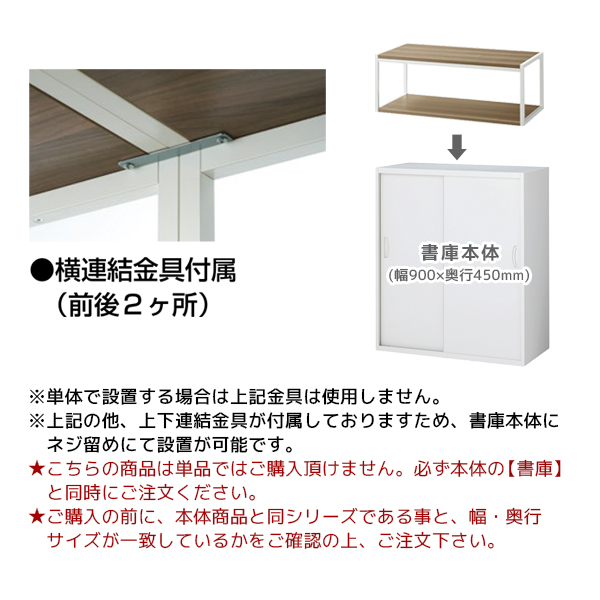 ※上下連結金具が付属しておりますため、書庫本体にネジ留めにて設置が可能です。