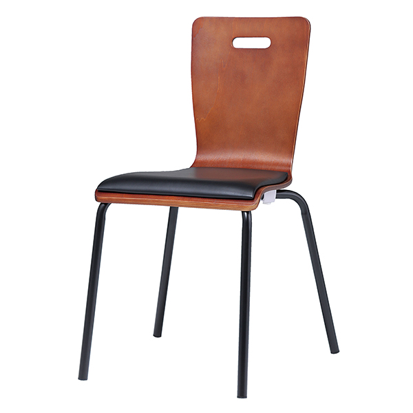 アンバー色の木目本体とブラックのPVCレザー座パットが高級感を際立たせるオシャレなミーティングチェアです。