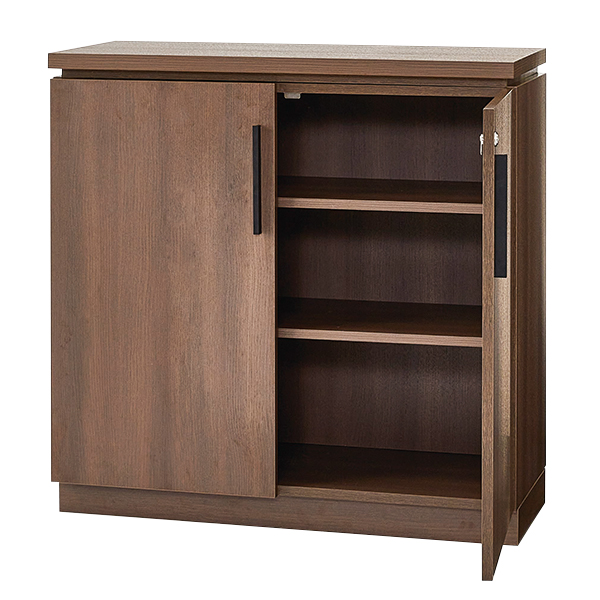 クイーンズランドウォールナット調のメラミン板と、ブラックのパーツのコンビネーションが高級感を演出する【FMSシリーズ】役員用家具です。