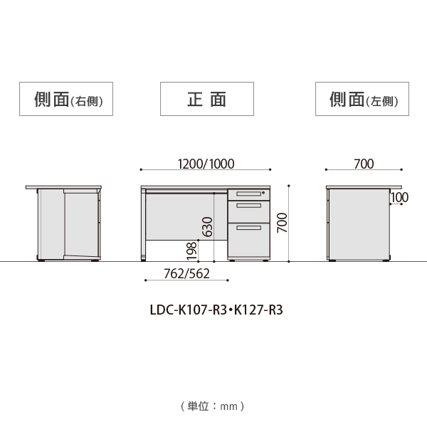 オーソドックスな幅1200mmタイプの片袖机!
