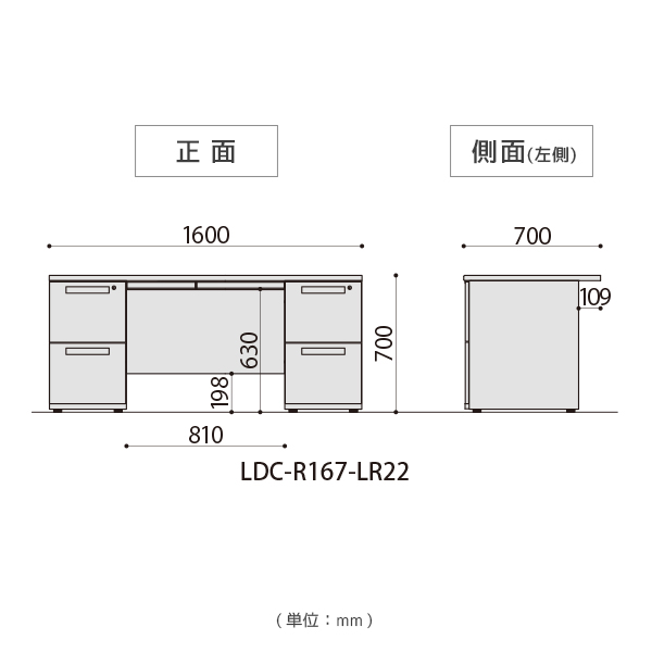 抜群の収納力と着席スペースのゆとりを兼ね備えた幅1600mmタイプ両袖机!