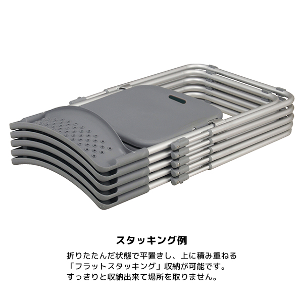 折りたたんだ状態で平置きし、上に積み重ねる「フラットスタッキング」収納が可能です。すっきりと収納出来て場所を取りません。