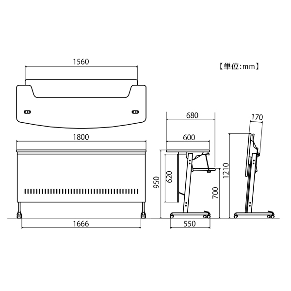 脚:59×45角パイプ、メラミン焼付塗装(シルバー)