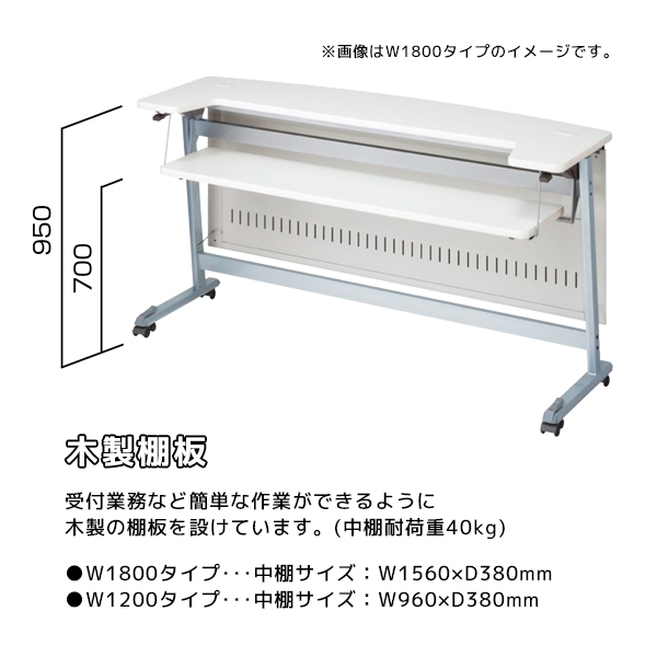 受付業務などの簡単な作業ができるように、木製の中棚を設けています。(耐荷重40kg)