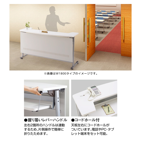 天板左右にコードホールが付いており、電話やPC、タブレット端末をセットする事が可能です。