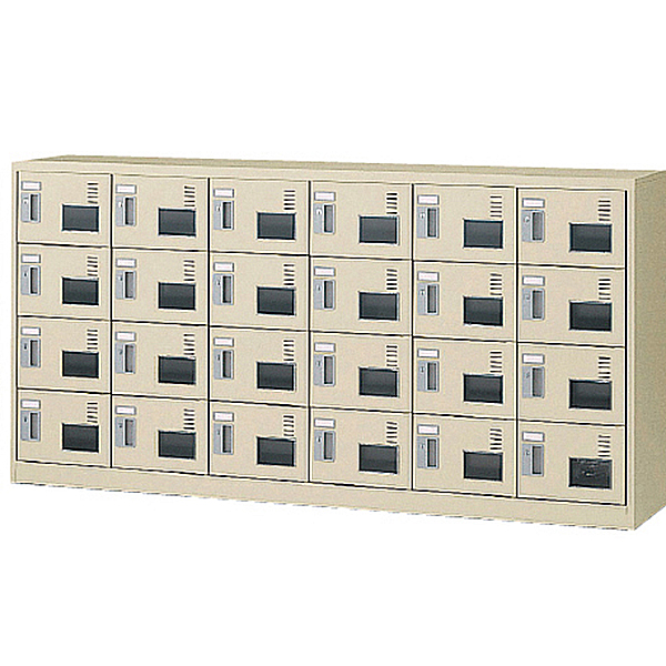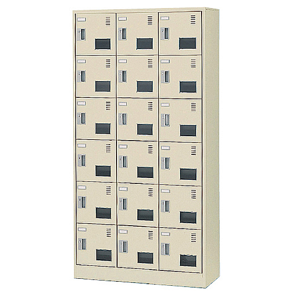 【受注生産】シューズボックス/3列8段24人用/鍵付/アクリル窓付タイプ/SLC-24TW-□/幅900×奥行380×高さ1790mm/ニューグレー/72375